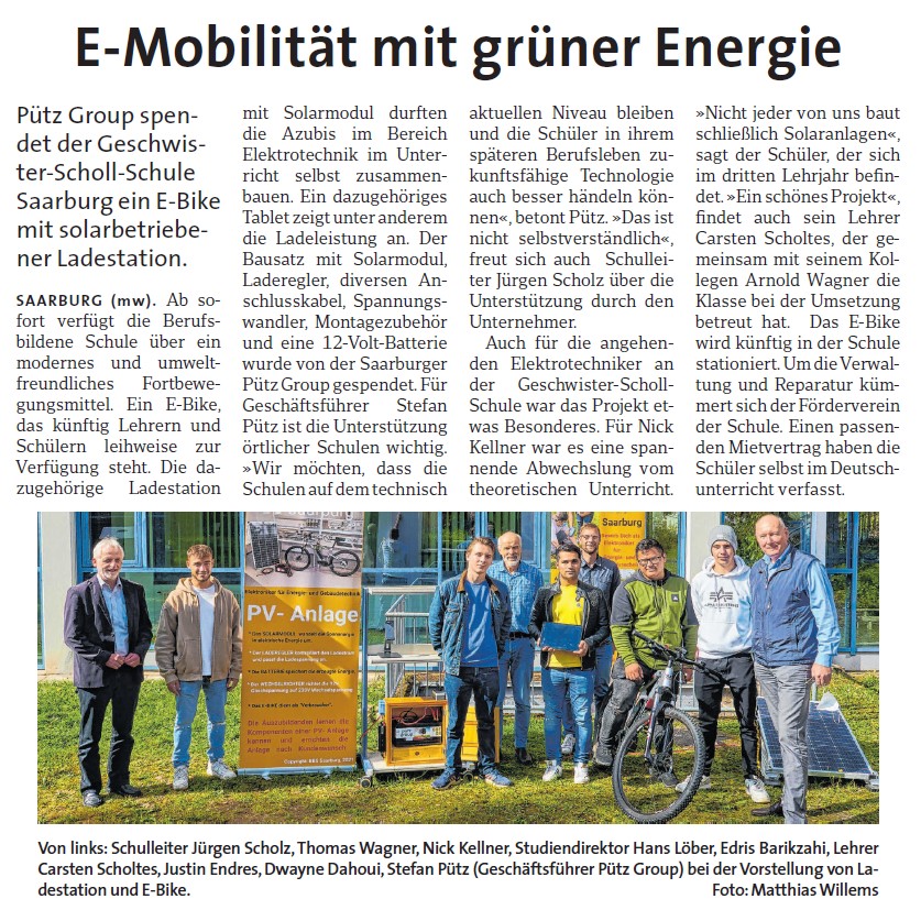 Am 30.10.2019 berichtete die Kreisnachrichten über unsere Sachspende im Wert von 5.000 Euro an die BBS Saarburg.